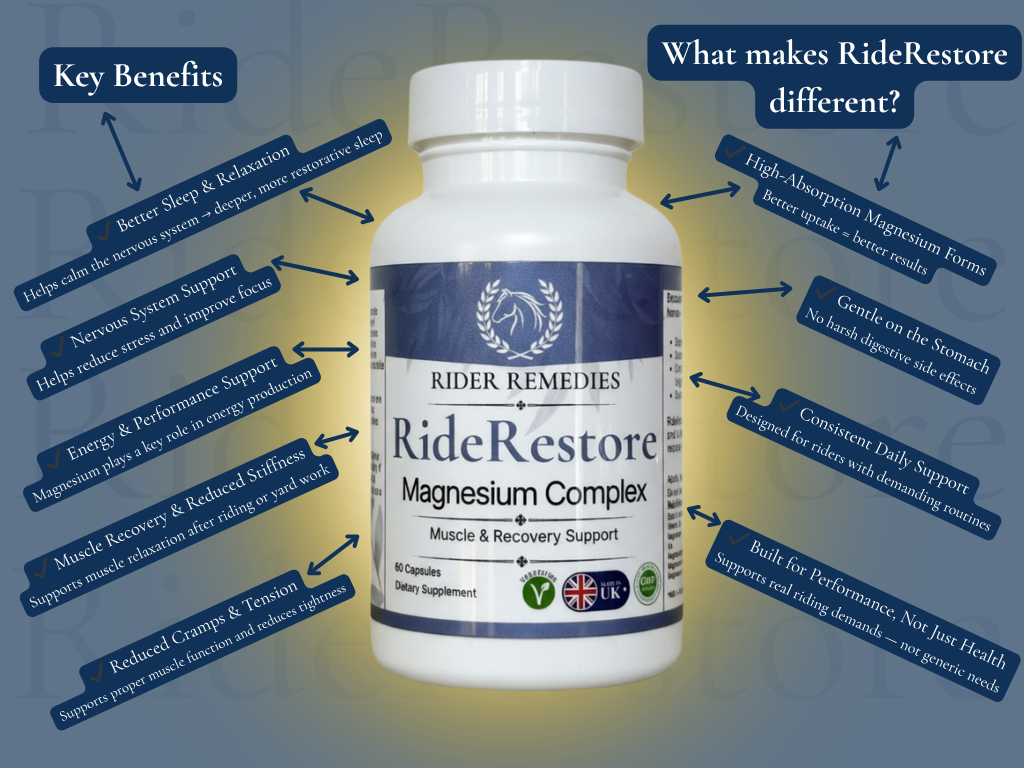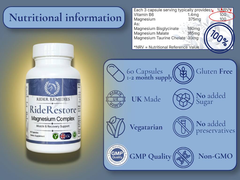 Magnesium plays a critical role in muscle contraction and relaxation, making it essential for active riders.